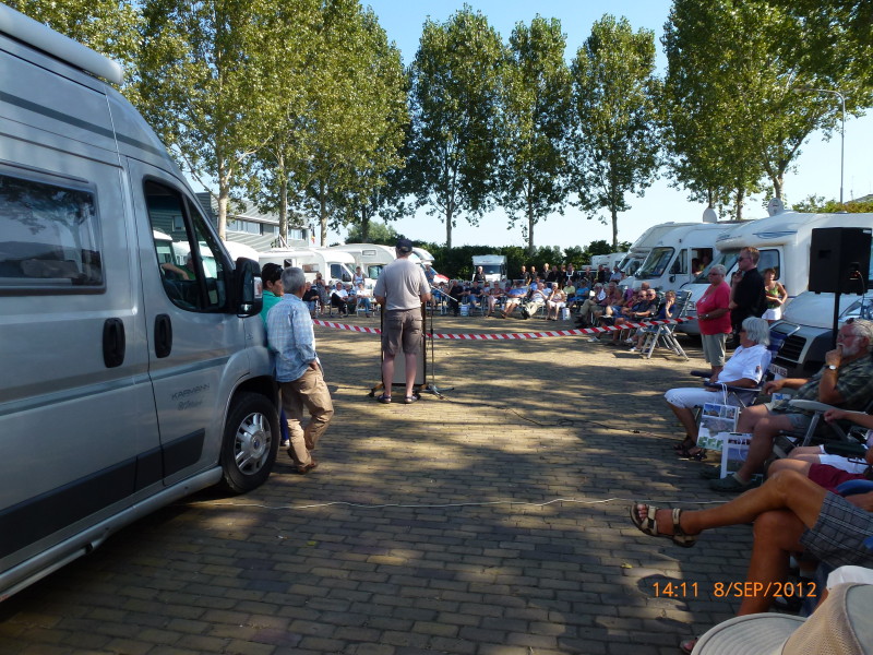 De organisatie heeft gezorgd voor muzikale begeleiding. De wethouder geeft aan dat ze blij is met de promotie van Hulst, een gemeente waar het goed toeven is. Zij hoopte dat het “camper event” jaarlijks herhaald zou worden omdat dit een prima promotie is voor de gemeente Hulst. Dit is een wethouder die weet wat campers voor een gemeente kunnen betekenen. Hierna voerden vertegenwoordigers van de CCN, de NKC en de Campersite.be het woord. Alle sprekers gaven aan erg blij te zijn met de camperplaatsen en hoopten dat de gemeente ook over zou gaan om voorzieningen aan te leggen, in de vorm van een sanizuil. Eén van de sprekers gaf aan dat uit nieuw onderzoek bleek dat per camper er gemiddeld € 60,- per dag wordt uitgegeven in de plaats van overnachting. Dat betekent dat camperplaatsen goed zijn voor de economie en de middenstand van het dorp.